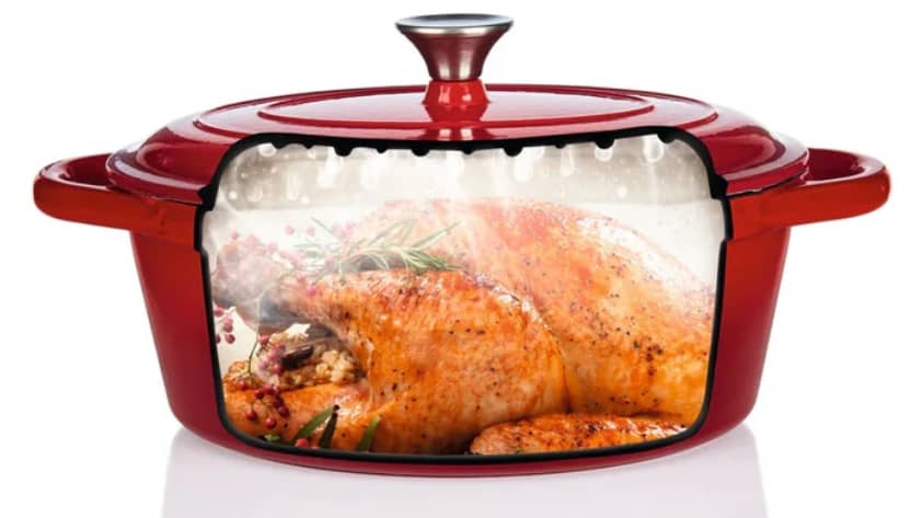 بخار حاصل از پخت، قطراتی را در سطح برآمدگیهای درب تشکیل میدهد. این قطرات به پایین میریزند و دائماً غذا را چرب میکنند تا پختی یکدست، آبدار و خوشطعم داشته باشید.